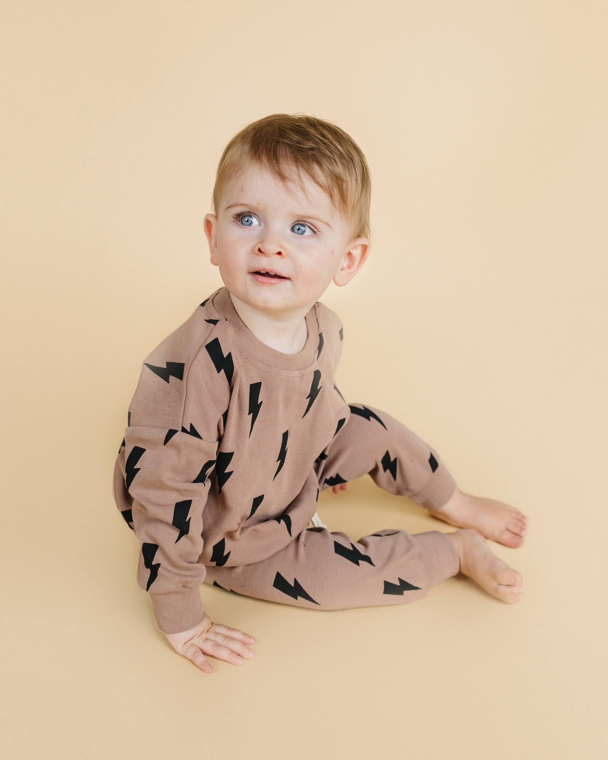 Your little one will look adorable and feel comfy in this playful set with bold bolts. This two-piece set is made of oh-so-soft cotton, perfect for daily lounging during any season! Stylish enough for a day out, cozy and comfortable for play. Gender neutral this rad and modern design will be your little one's favorite must-have! * Composition: 95% cotton, 5% spandex * Fit: Relaxed fit, true to size * Care: Wash in cold water, tumble dry low