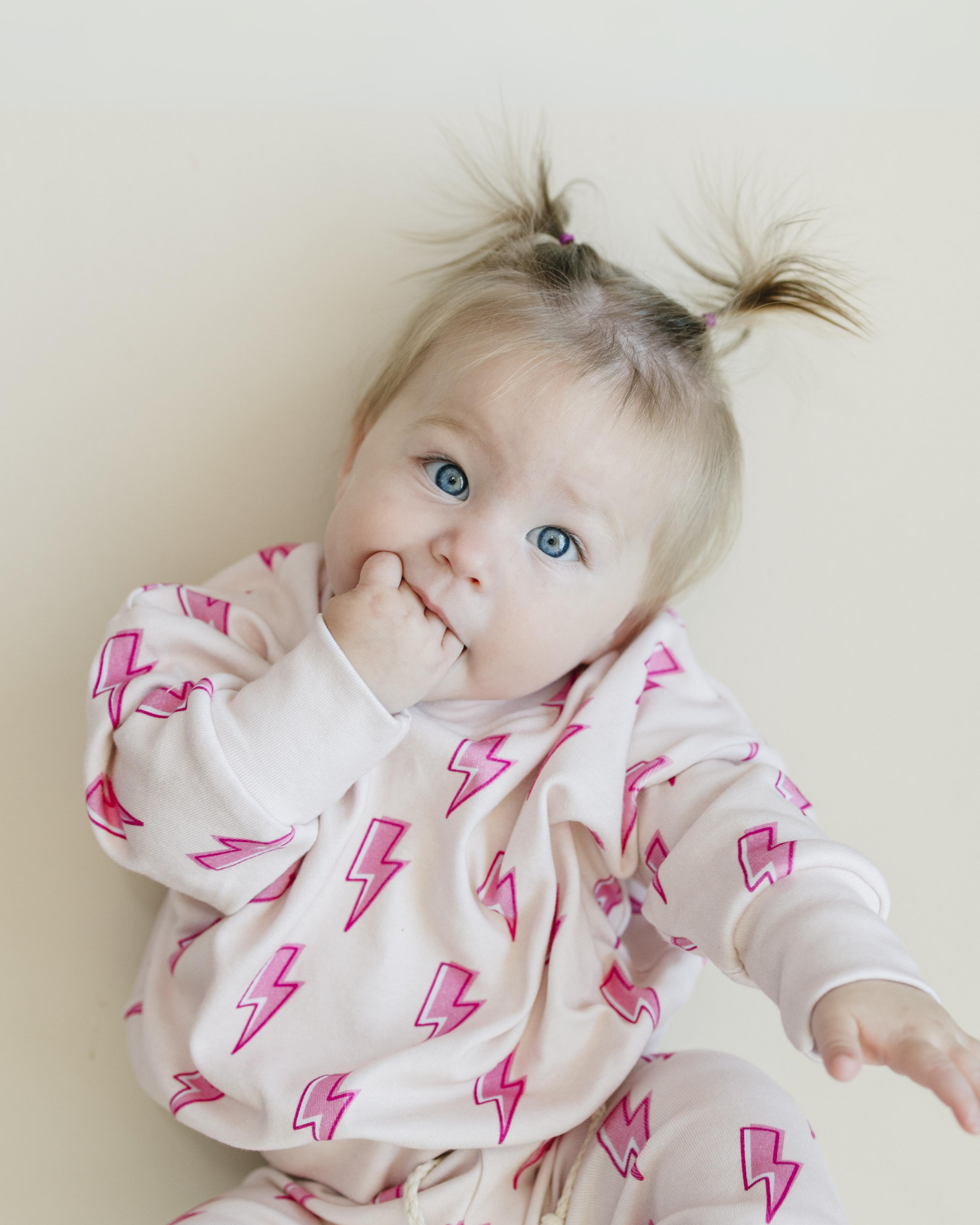 Your little one will look adorable and feel comfy in this playful set with bold bolts. This two-piece set is made of oh-so-soft cotton, perfect for daily lounging during any season! Stylish enough for a day out, cozy and comfortable for play.