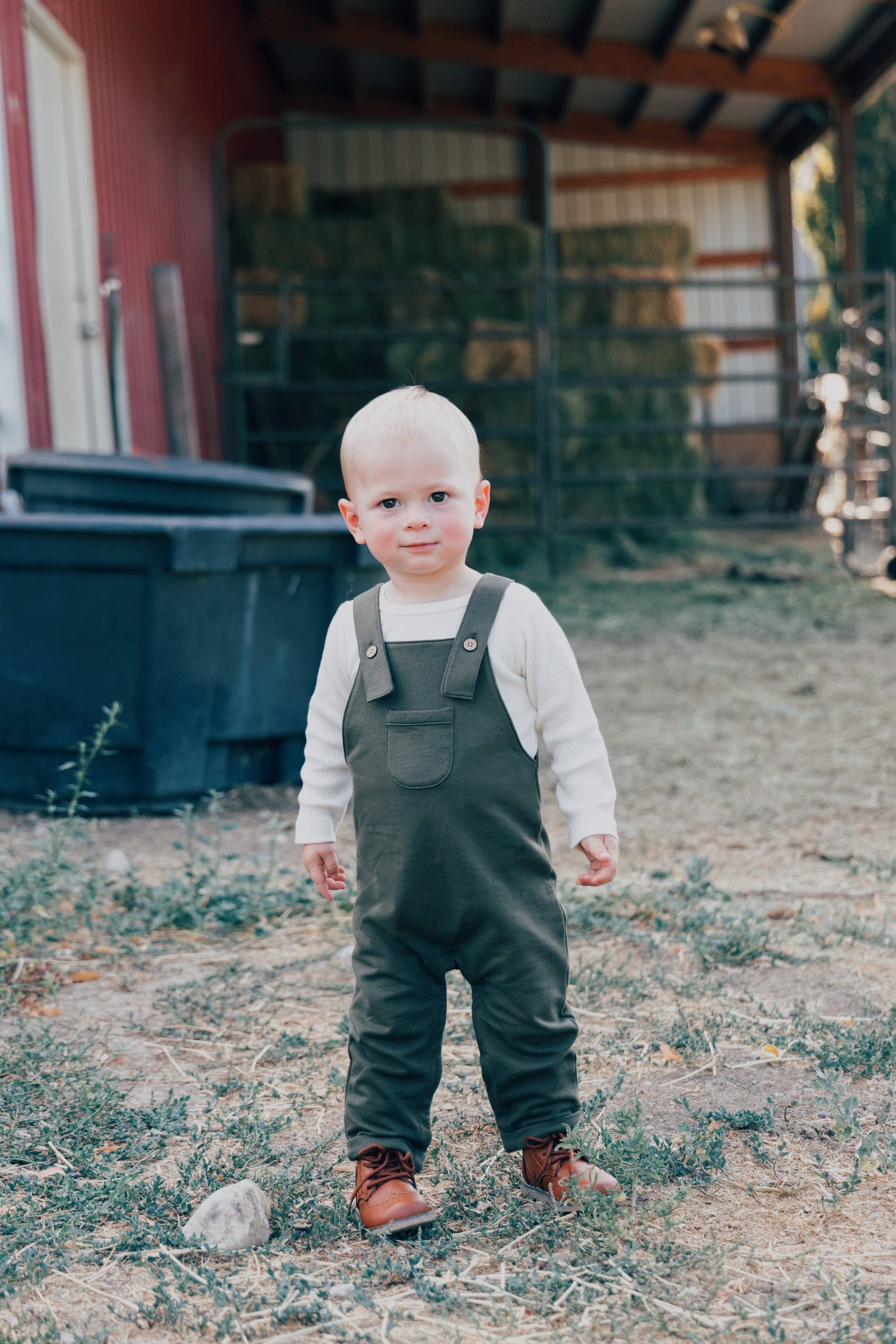 Our fleece overall is back in beautiful green for fall. With a front pocket for his treasures and snaps along the legs for easy changes, it's perfect for every day.